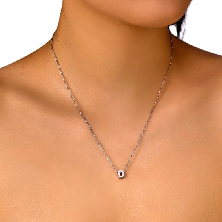 Κολιέ αρχικού γράμματος από ανοξείδωτο χάλυβα D