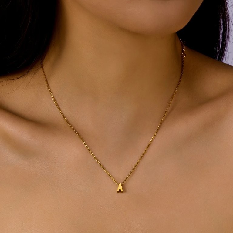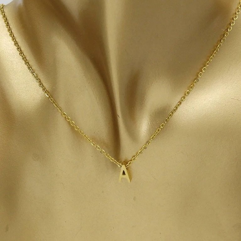 Κολιέ με αρχικό γράμμα από ανοξείδωτο ατσάλι σε χρυσό χρώμα A
