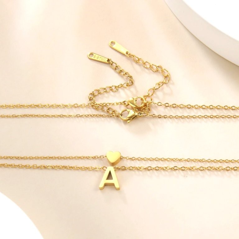 Κολιέ με αρχικό γράμμα από ανοξείδωτο ατσάλι σε χρυσό χρώμα A - Image 3