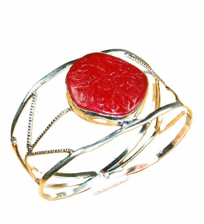 Bracelet bangle Lovely Carved Ruby Stylish Look .925 silver