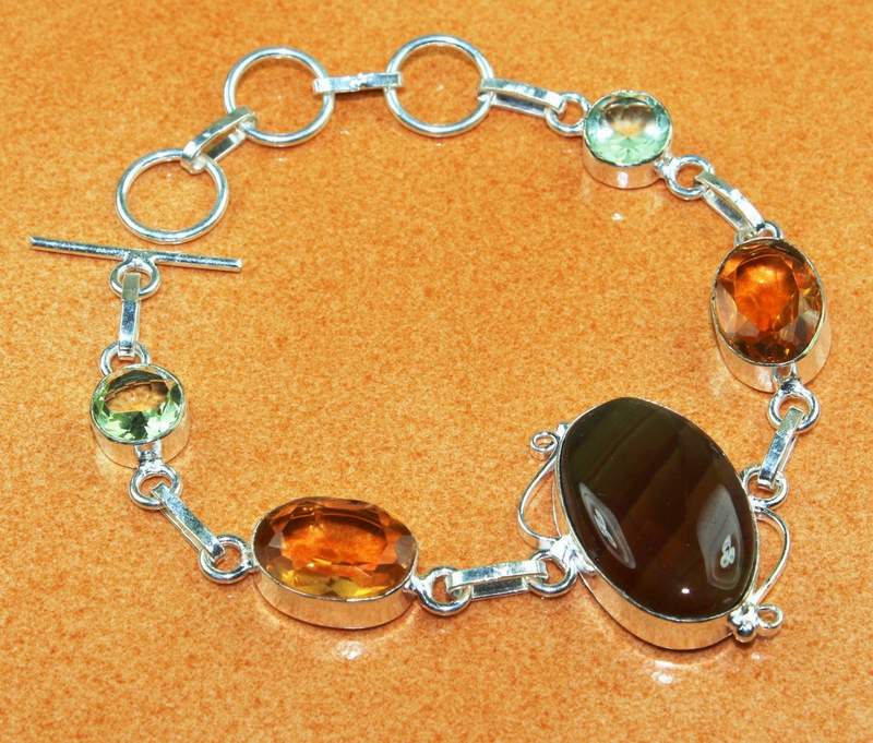 Silver Bracelet Lace Agate & Multi Stone Pretty .925