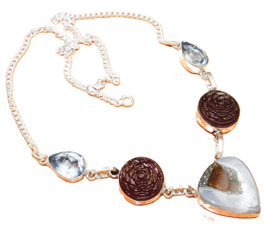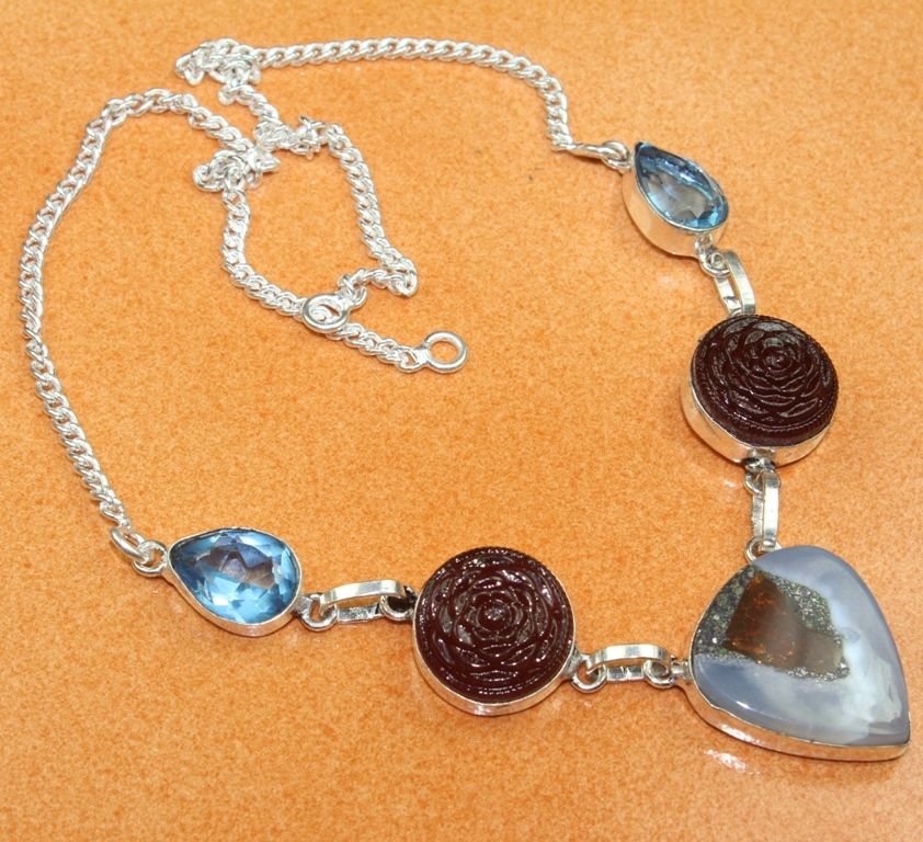 Silver Necklace  Massive Rainbow Calsilica Superb .925  - Image 2